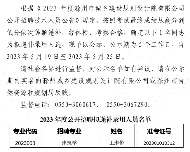2023年滁州市城鄉(xiāng)建設規(guī)劃設計院有限公司